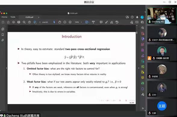 Introduction: 修大成教授,芝加哥大学布斯商学院计量经济学和统计学教授, 上海交通大学上海高级金融学院计量经济学和统计学访问研究教授。修大成教授的研究兴趣包括:设计统计方法并将其应用于金融数据,来研究数据中所反映的经济学涵义。他早期的研究涉及风险测量和投资组合管理,包括高频数据和衍生产品的计量经济学模型。他目前的研究主要集中在设计机器学习方法来解决资产定价领域的大数据问题。修教授已在Econometrica, Journal of Political Economy, Journal of Finance, Review of Financial Studies, Journal of the American Statistical Association, 以及Annals of Statistics上发表了研究成果。他是Journal of Financial Econometrics的共同主编, Review of Financial Studies, Management Science, Journal of Econometrics, Journal of Business & Economic Statistics, Econometrics Journal, Journal of Applied Econometrics,以及Journal of Empirical Finance的副主编,同时他也是计量经济学、统计学和金融学等领域多个期刊的审稿人。因其研究,他获得了多项荣誉,包括金融计量经济协会会士、Journal of Econometrics会士、2018年瑞士金融学院杰出论文奖、2018年AQR Insight Award和2017年欧洲金融协会年会最佳会议论文等。2017年,修大成教授创设了网站来实时提供个股以及股票、货币和商品期货的日波动率。这些波动率是基于他对高频数据的研究成果,用日内交易数据计算得出。