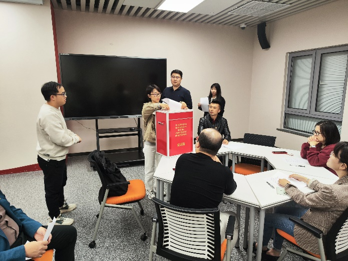 2023年10月25日,国际经济管理学院教师党支部在博远楼“党员之家”召开支部党员大会,讨论王峥同志按期转正事宜。会议由教师党支部书记牛毅主持。本次大会应到党员25人,其中正式党员23人,实到有选举权的正式党员15人。