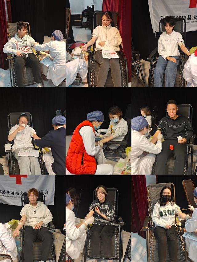 11月25日,国际经济管理学院20余名学生在大学生活动中心参加了由校医院与中国红十字会联合举办的无偿献血项目。