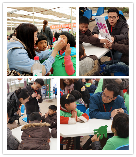 尽管刚下过雨,空气中仍然弥漫着丝丝寒意,可是我们的志愿者内心都充满了暖意,期待着将自己的爱心与温暖传递给太阳村的小朋友们。志愿者分队到达太阳村农场后,立即投入到赛前的准备工作中,随后经过赛会组织者安排,志愿者分队承担了运动会的领队和裁判工作,同时协助维持运动会秩序。太阳村的小小运动健儿们组成了“拼搏队”、“进取队”、“互助队”、“友爱队”四只参赛队伍,他们将在赛场上就三个比赛项目一决高下。上午十点钟,“首届太阳村爱心杯运动会”在嘹亮的国歌声中正式开幕。首先进行的是踢毽子比赛,每支参赛队伍选出四位选手组成两组,运动员之间交替踢毽子两分钟,计数多者胜出。一轮赛罢,“进取队”的两组四位小朋友以总计96次的好成绩暂时领先。接下来进行的是跳绳比赛,同样是每队选出四名队员组成两组进行比赛,两位队员同时完成一次跳绳算合格,计数多者胜出,这轮比赛,“友爱队”不甘落后,他们选出四位出色的小伙子,配合默契,最终以两分钟跳绳382次的成绩遥遥领先其他组。最后进行的拔河比赛移至室外操场,四支参赛队伍分成两组,经过两轮激烈的比拼,“拼搏队”最终战胜“互助队”,夺得拔河比赛的第一名。