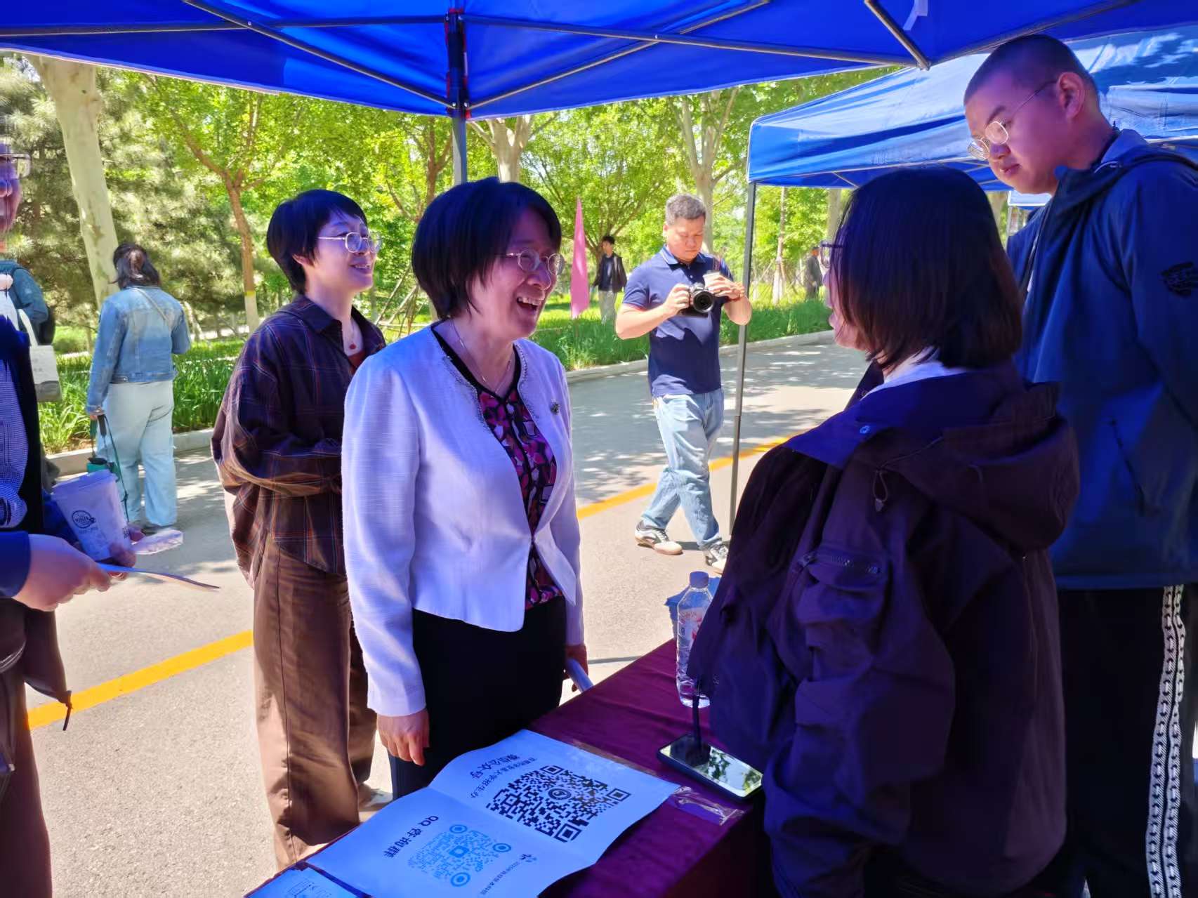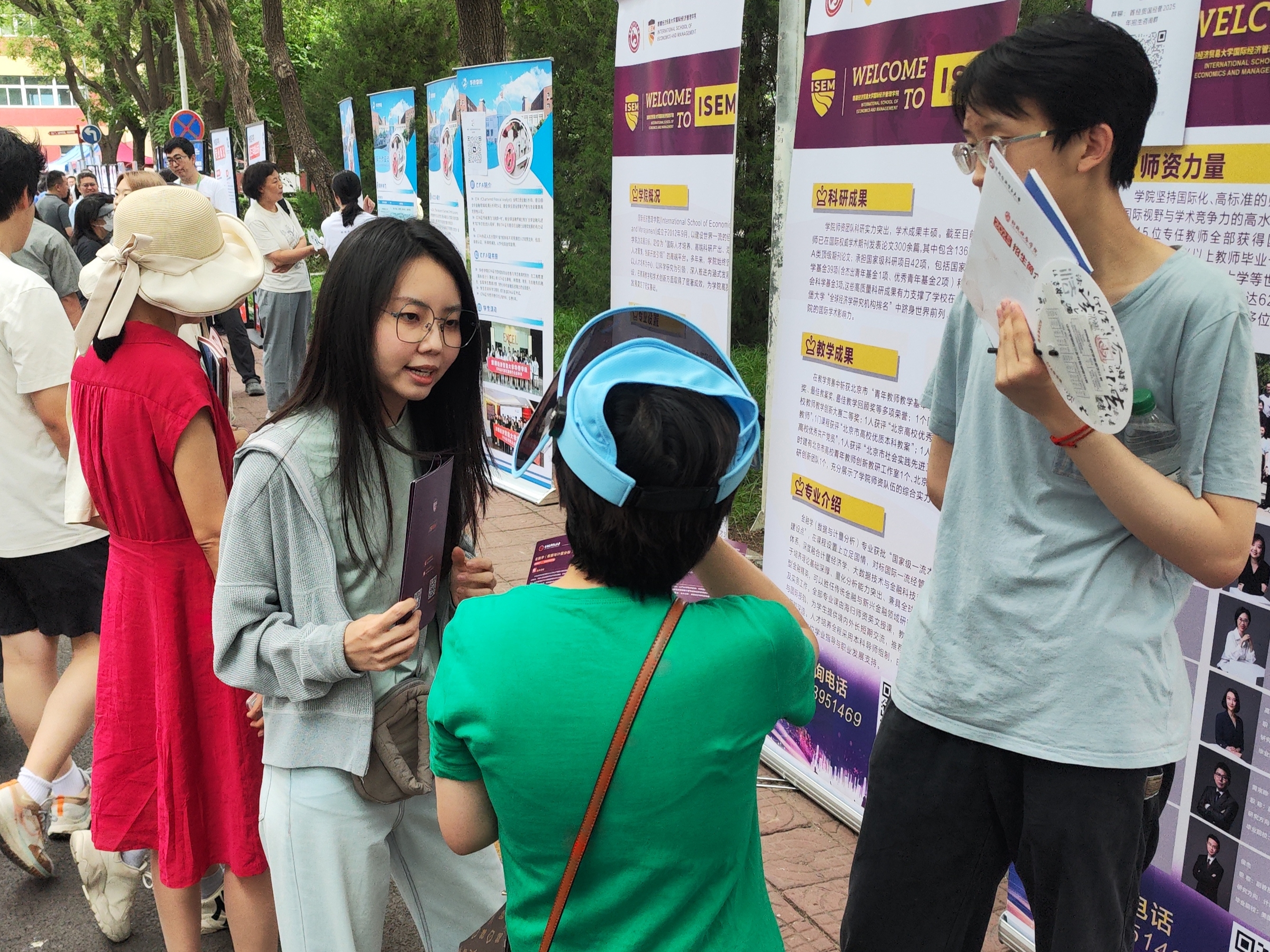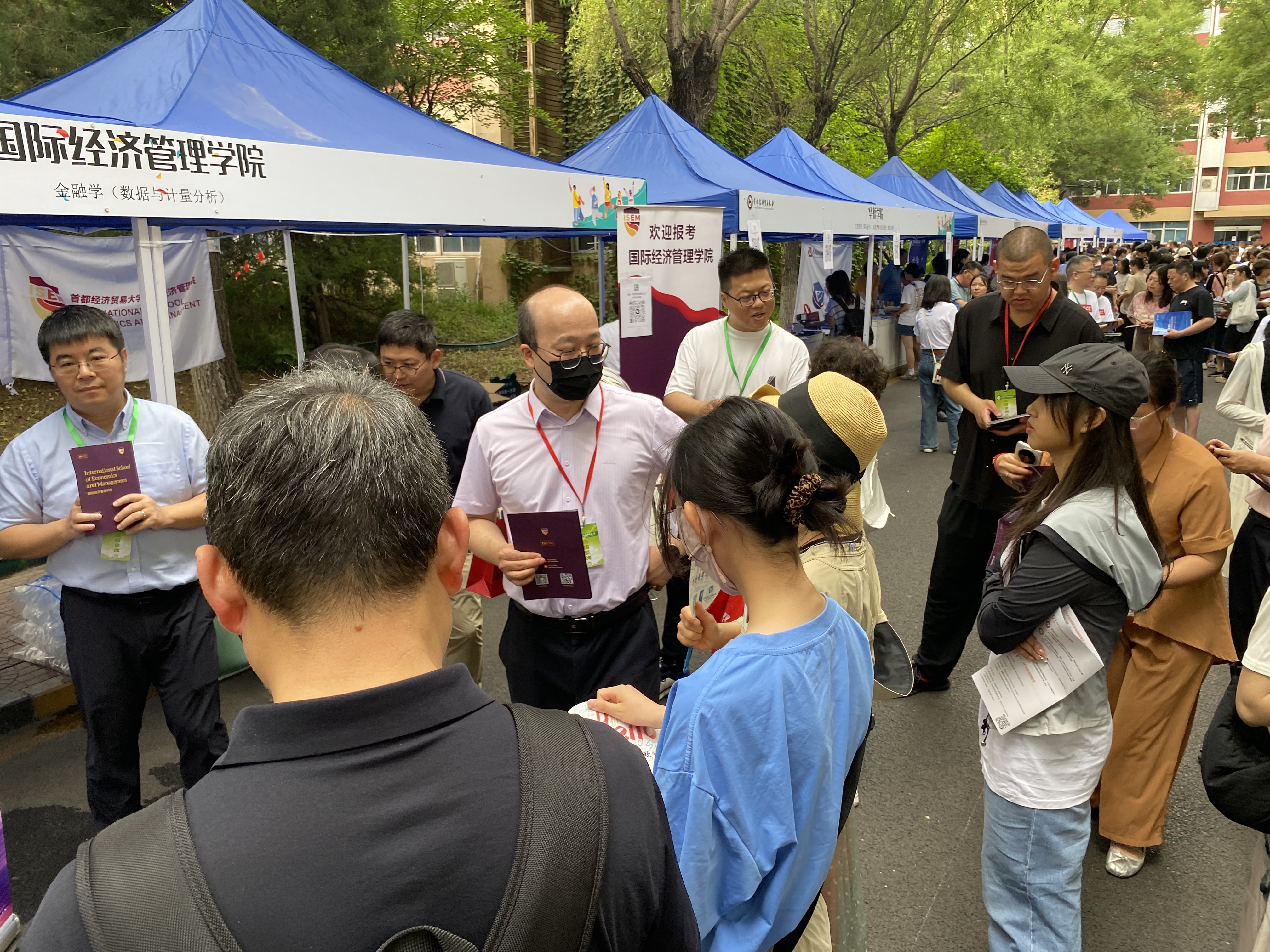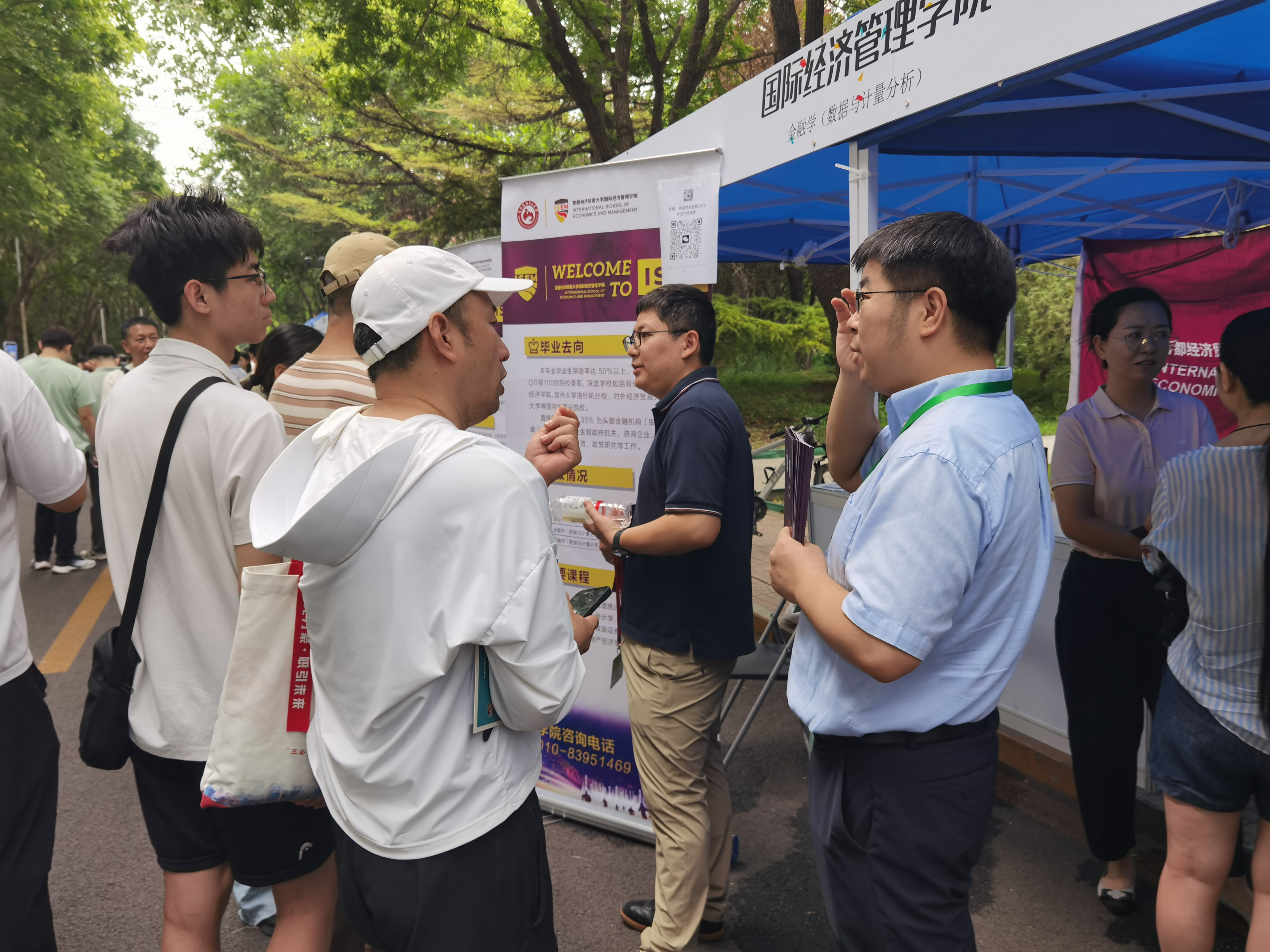 6月26日上午,国际经济管理学院在首都经济贸易大学校园开放日活动中,面向2025届高考考生及家长开展了本科招生现场咨询。学院党委书记姜蓓蓓、院长马庆寅、党委副书记付明岩、副院长高静、副院长李委明、金融系两位主任黄宗晔和庞蔡吉、团委书记张雅淇、教学秘书胡一晗以及在校学生代表共同参与了此次活动。