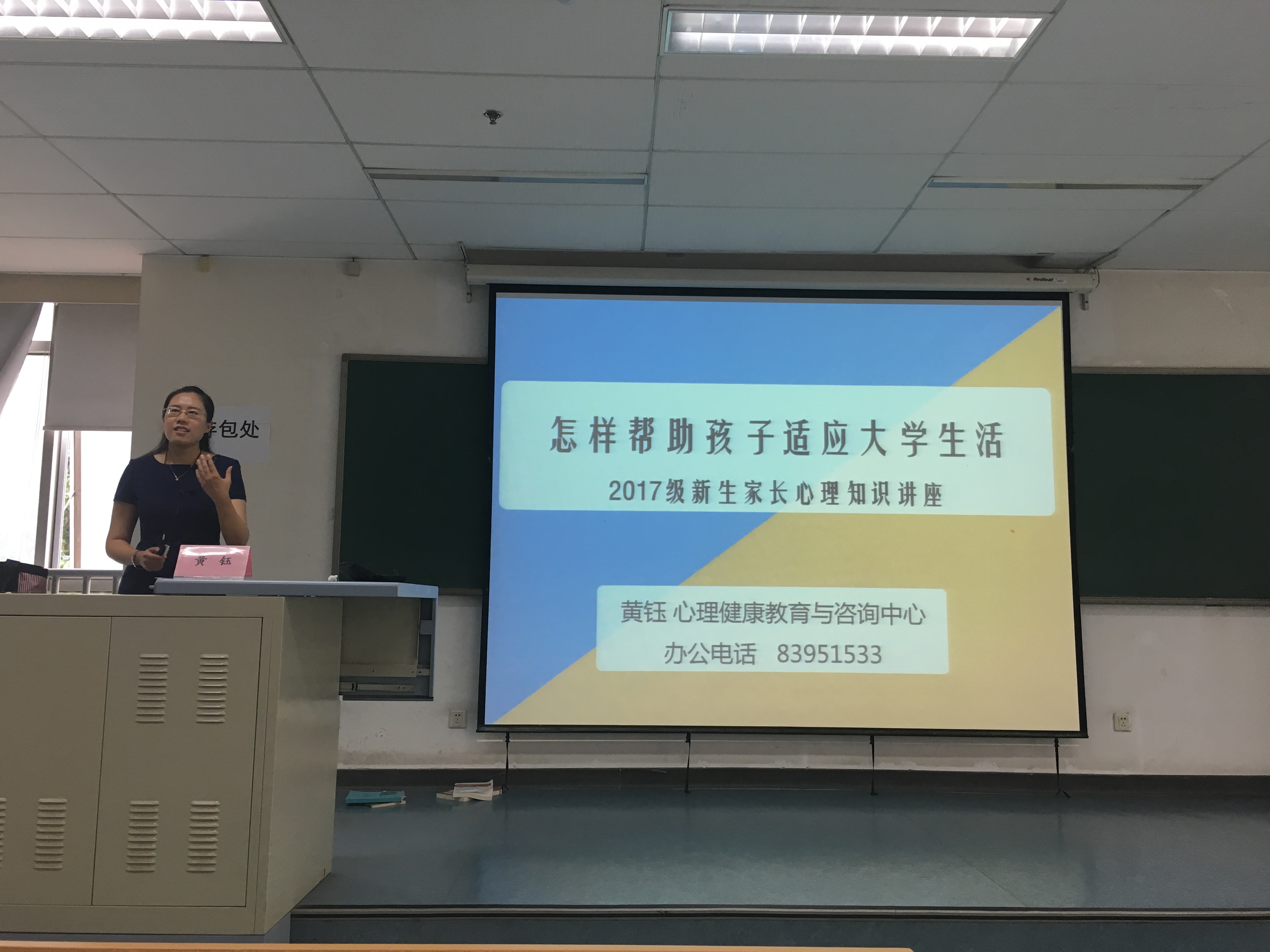 为帮助和引导家长树立正确的家庭教育观念,掌握科学的沟通方法,提高家长与子女交流的有效性,9月2日下午,国际经济管理学院新生家长学校在博学楼第四阶梯教室举办,学生处心理咨询中心教师黄钰,为新生家长带来题为“怎样帮孩子适应大学生活”的主题讲座,以期与新生家长一道,为孩子今后的健康成长保驾护航。