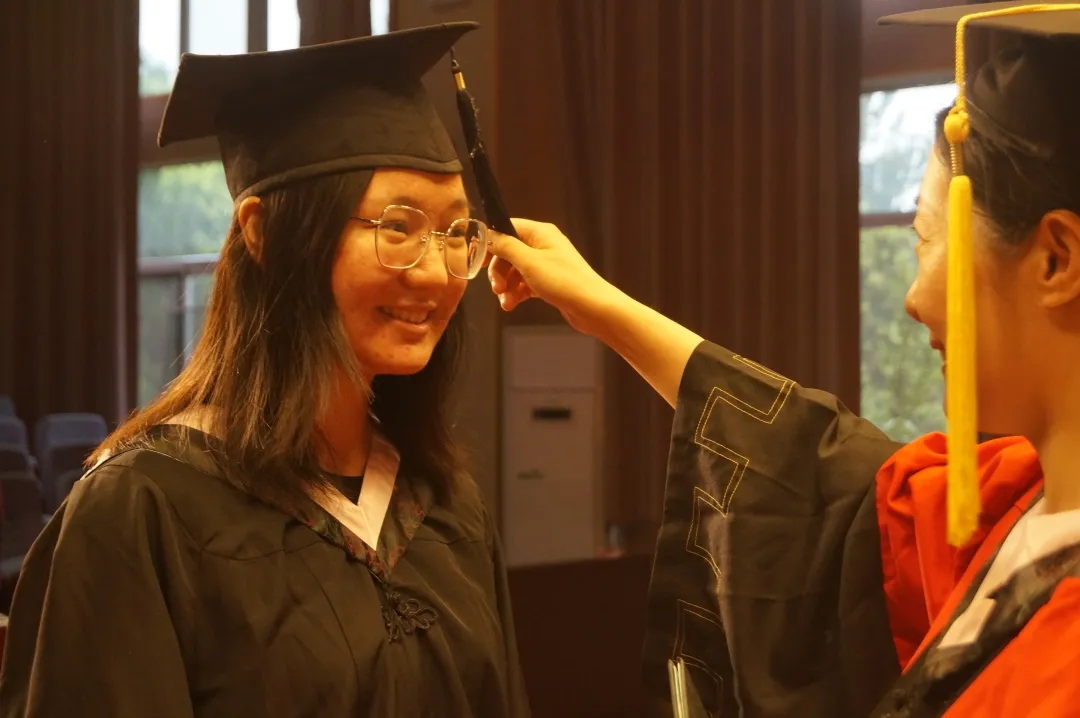 在欢快的音乐声中学位授予仪式拉开帷幕,李鲲鹏与高静逐一为毕业生拨穗、授予学位证书并表示美好的祝愿与诚挚的祝福。拨穗,意味着学有所成,学位授予,更是对大学期间努力拼搏的肯定。仪式的举行让毕业生的大学经历更加圆满完。