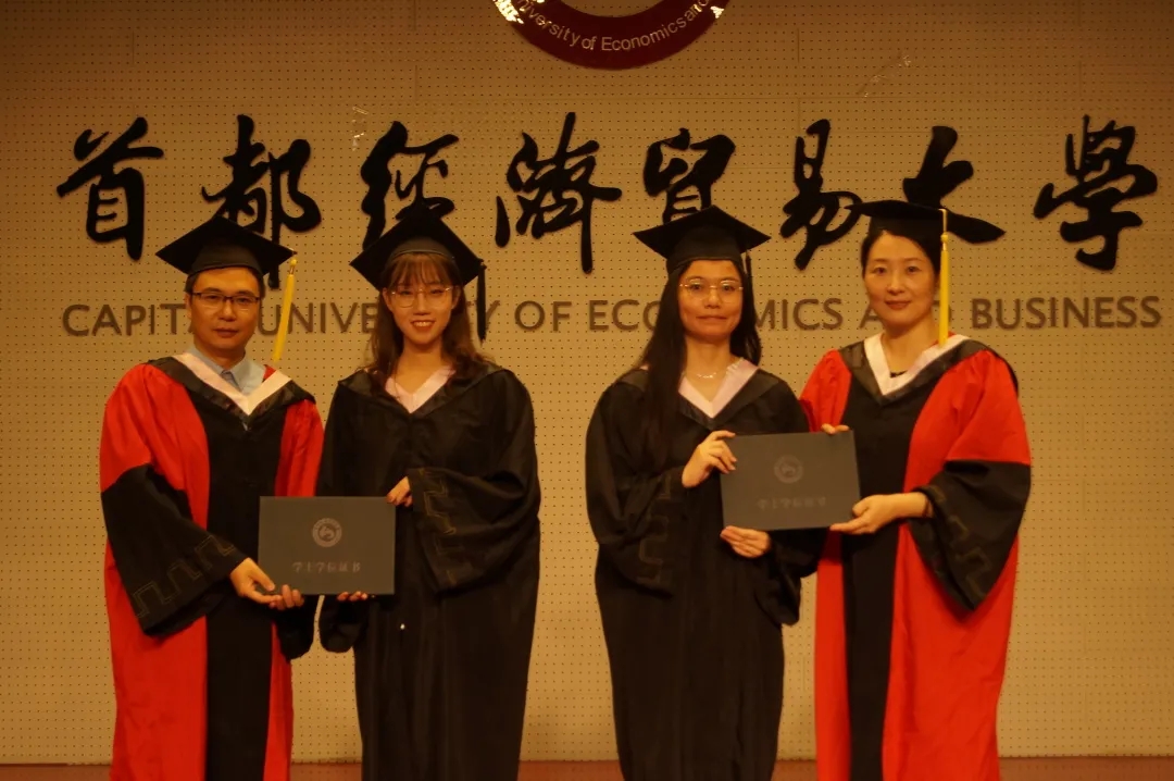 仪式最后,国际经济管理学院院长李鲲鹏为2021届毕业生带来了大学期间“最后一堂课”,党总支副书记于滨滨代表学院教师发表离别感言。在老师的一句句祝福中,毕业生们都顺利拿到自己的学位证书并并留下了珍贵的合影。