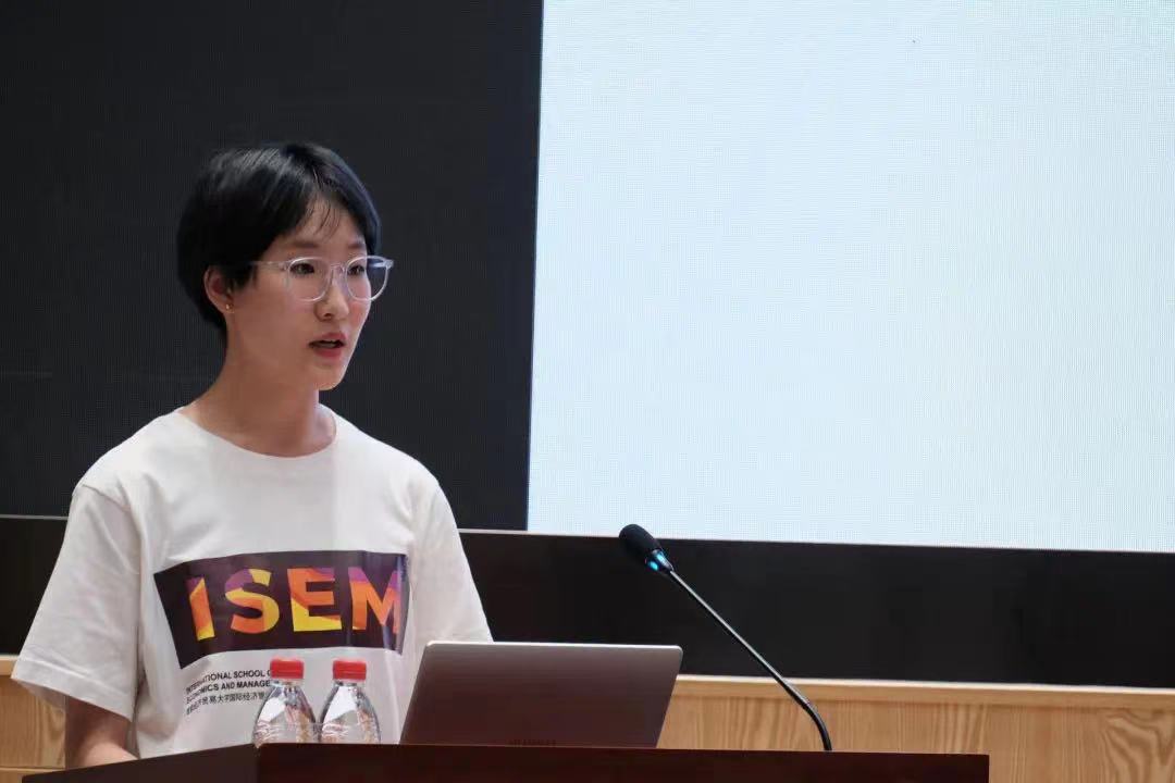 20级本科生韩旭代表全体国经管在校生发言,她分享了自己大学的生活点滴,以自己亲身经历为例告诉大家在大学中有许许多多可以提升自己的机会,她强调了社会实践以及相关证书的重要性。同时,她鼓励大一新生可以用奋斗将理想化为现实。新生代表张佳琳发言,她回忆了高中的奋斗经历表达了对未来四年大学生活的期待与向往,她希望可以借助学院这个优秀的平台展现自我,通过刻苦学习,培养科学精神、锤炼品格情操,勇担时代先锋。她表示作为国经管的一员,将以学长学姐为榜样,用奋斗实现自己的梦想。