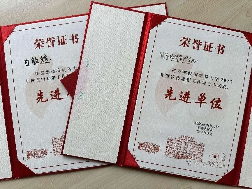 2024-04-03喜报!国际经济管理学院学生第二党支部荣获2023年北京高校红色“1+1”示范活动优秀奖